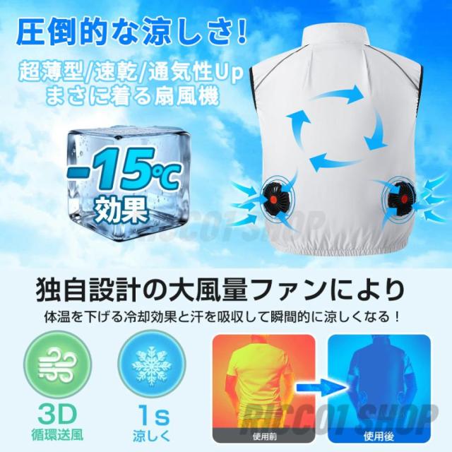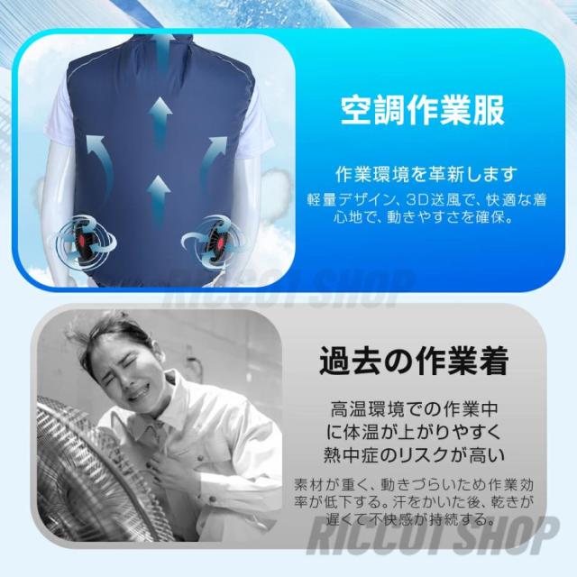 空調作業服 大風量 10h連続送風 9枚羽根 3段階強風 洗える 防水 クールベスト 空調ウェア エアコン服 空調ベスト UVカット UPF50+ 熱中症対策 軽量 男女兼用