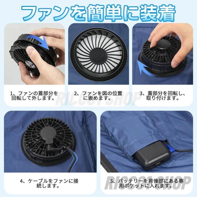 ◎ご注意:空調ウェアは水洗い可能ですが、洗濯前に、必ず電池、ファン、電源ケーブルを取り外してください。
