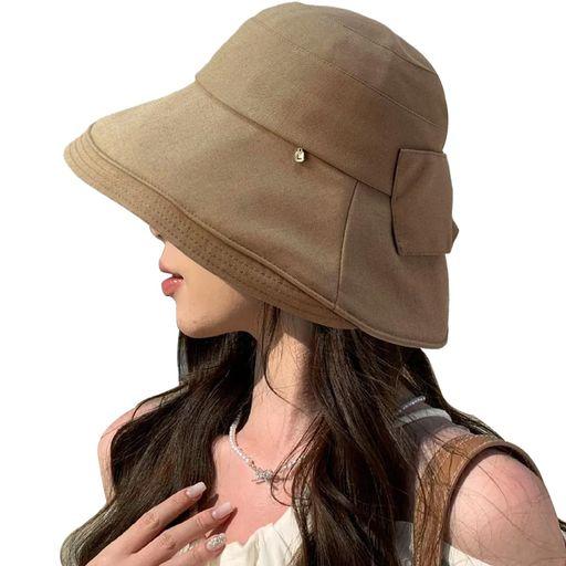 [YOSANG] レディース帽子 バケットハット 春夏 UVカット おしゃれ つば広 深め 小顔効果 リボン付き 日焼け対策 あご紐 折りたたみ 散歩 海 アウトドア 旅行(コーヒー)