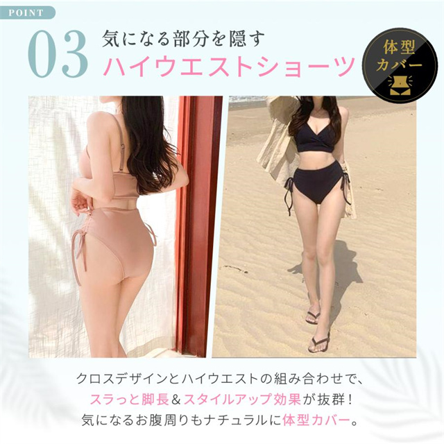 ビキニ 水着 レディース 体型カバー スカート 上下 セット セパレート 黒 20代 30代 40代 ウエスト お尻 太もも カバーアップ 露出控えめ 大きいサイズ 送料無料