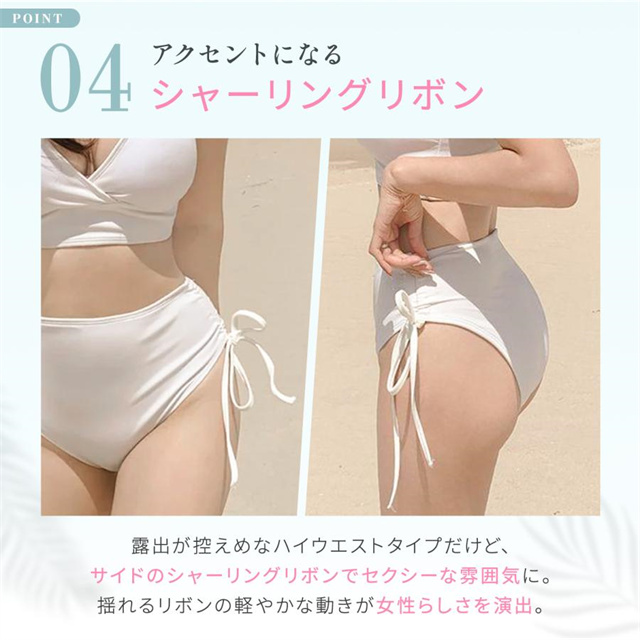 ・ショーツサイドのシャーリングリボンがポイント