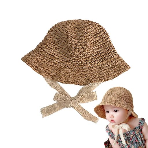 [UMELOEO] 子供用 麦わら帽子 キッズ ペーパーハット ベビー 女の子 ストローハット つば広 シンプル 折りたたみ 日除け帽子 サンハット 赤ちゃん 帽子 夏 UVカット 日焼け止め (S 48CM, カーキ)