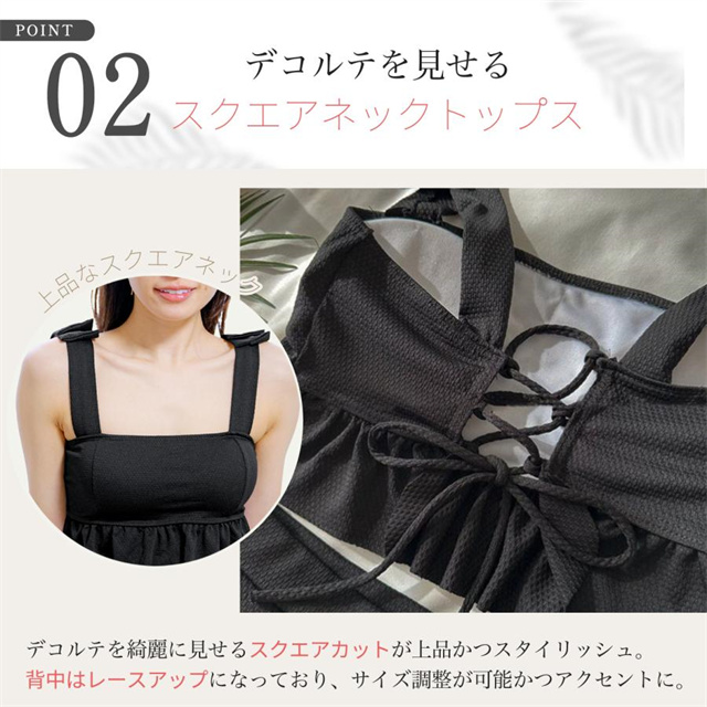 ・肩紐とトップスのサイドドロスト部分が繋がっているのでお好みの長さに調節可能