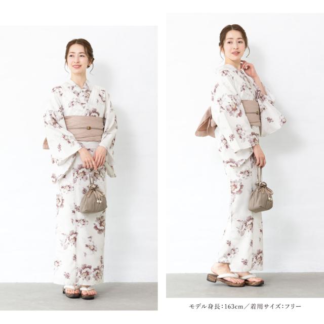 浴衣 セット レディース 浴衣セット 兵児帯 2025 floro 簡単 涼しい 白 赤茶 ピンク 花柄 モダン おしゃれ 大人 アラサー アラフォー ママ 下駄 S フリー 送料無料
