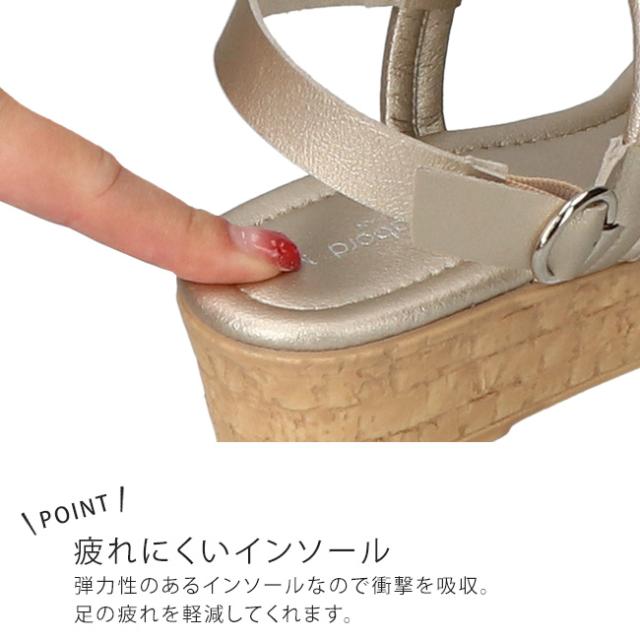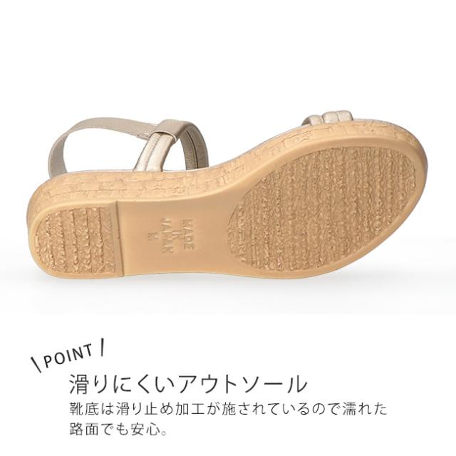 サンダル レディース 疲れない 歩きやすい 痛くない 脱げない 柔らかい 履きやすい オープントゥ かかと付き かかとあり ウェッジソール おしゃれ ストラップ パルティエダボール 日本製 オフィス シューズ 通勤 靴 53203