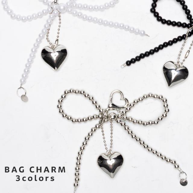 バッグチャーム リボン チェーン 韓国 大人可愛い かわいい キーホルダー ハート バッグ チャーム おしゃれ 大人 オシャレ 女性 レディース 可愛い きれいめ アクセサリー チャーム ブラック 黒 グレー ホワイト 白 2025 春 春夏 夏