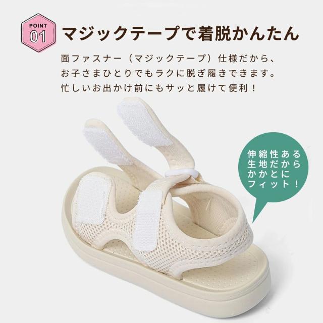 1歳・2歳・3歳のベビーにも安心して履かせられるベビーサンダルとしても人気。