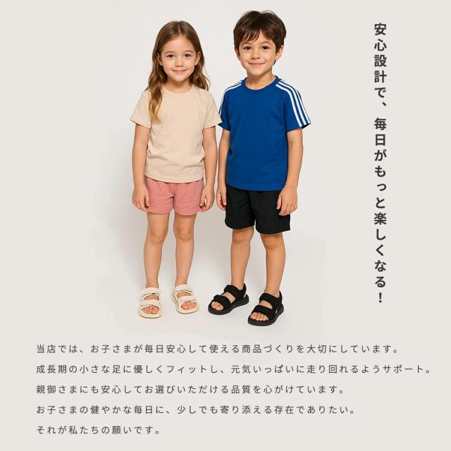 キッズサンダル男の子向けのクールな黒・キッズサンダル女の子向けのかわいい白など、選べるカラーでおしゃれが楽しめます。