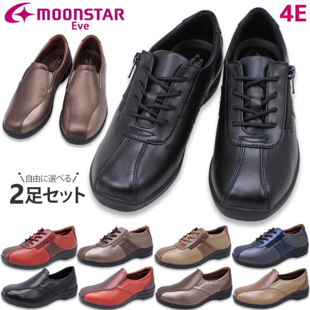 2足で8558円 ムーンスター イブ MOONSTAR EVE 195 196 レディース コンフォートシューズ スニーカー 4E 幅広 ファスナー 外反母趾 【レディース】