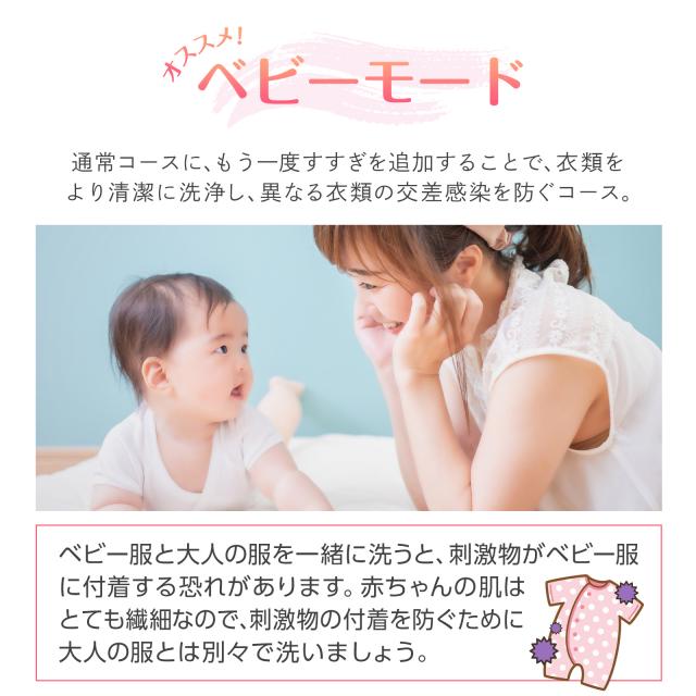 さらに、赤ちゃんの衣類にも配慮したベビーモードも搭載。