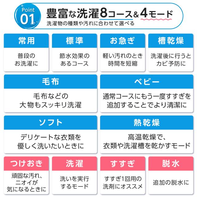 豊富な洗濯8コースと4モード