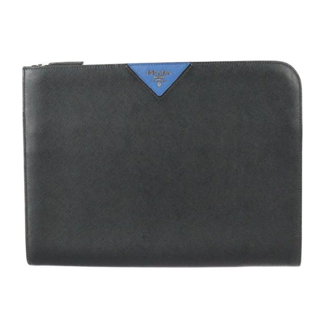 プラダ ドキュメントケース サフィアーノトラベル セカンドバッグ 2VN003 レザー 黒 青 L字ファスナー クラ【本物保証】