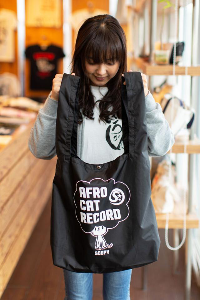 マルシェバッグ メンズ レディース AFRO CAT RECORD - ブラック ネコ ねこ 猫柄 雑貨 マチ広 レジ袋 コンビニ 折りたたみ - メール便 - SCOPY スコーピー