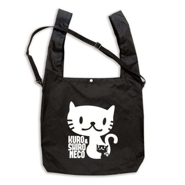 マルシェバッグ メンズ レディース しろ&くろねこさん - ブラック ネコ ねこ 猫柄 雑貨 マチ広 レジ袋 コンビニ 折りたたみ - メール便 - SCOPY スコーピー