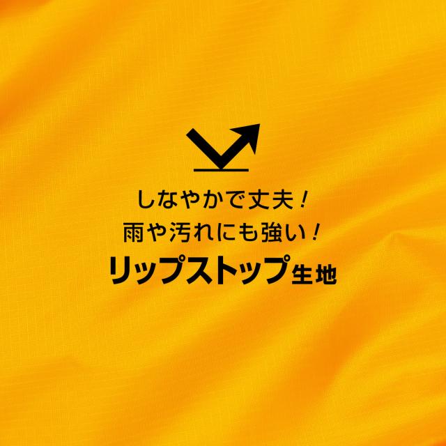 ポリエステル素材の生地に、さらに格子状にリップストップナイロン繊維を縫い込んでいった生地のことです。まさにリップ(裂ける)をストップ(止める)させるように、強度や摩耗に達しして非常に強い生地のため抜群の耐久性を誇る生地です。