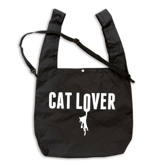 マルシェバッグ メンズ レディース CAT LOVER - ブラック ネコ ねこ 猫柄 雑貨 マチ広 レジ袋 コンビニ 折りたたみ - メール便 - SCOPY スコーピー