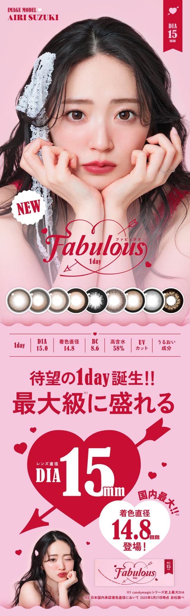 【2箱セット】1day登場 カラコン ファビュラス ワンデー 1箱 10枚入 FABULOUS 1day 度あり 度なし 15mm 高含水 鈴木愛理 盛れる 大きい フチあり フチなし デカ目 カラーコンタクト コンタクトレンズ