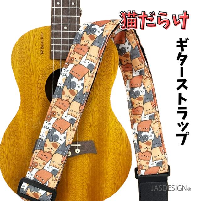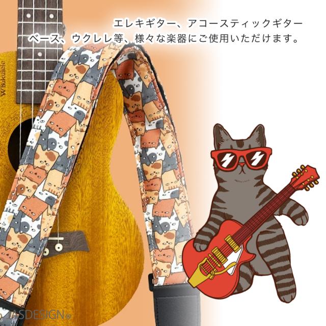 ギターストラップ ベースストラップ ウクレレストラップ ギターストラップピン 子供 大人 ギターストラップ可愛い ミニギター ミニギター子供 おしゃれ かわいい 面白い 猫 ねこ ネコ 猫だらけ 猫まみれ メンズ レディース ギフト プレゼント