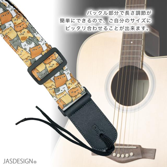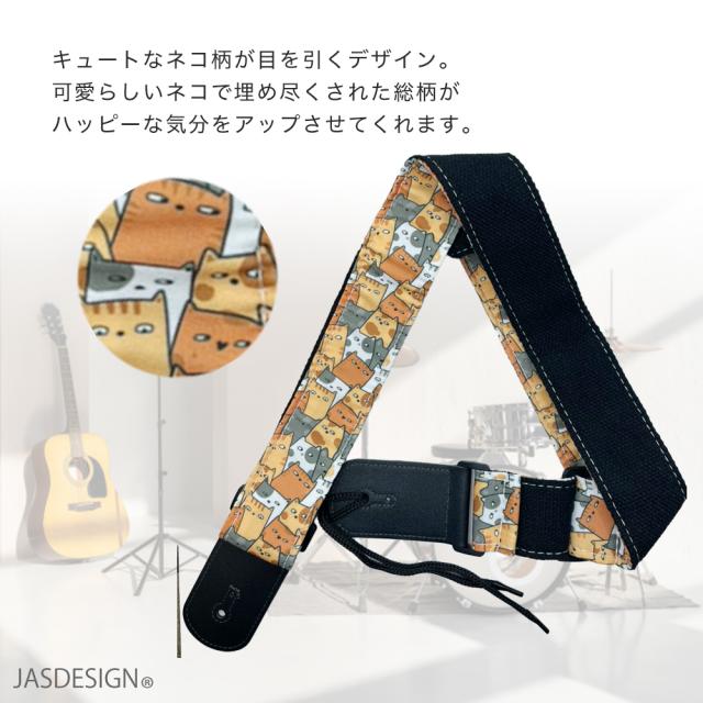 ギターストラップ ベースストラップ 猫 ねこ 可愛い 猫柄 猫だらけ ねこまみれ ベース フォークギター エレキギター ウクレレ ストラップ ベルト 面白い 子供 大人 男 女 送料無料 JM-401