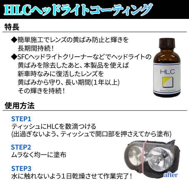 ◆HLCヘッドライトコーティングは、簡単施工でレンズの黄ばみ防止と輝きを長期間持続させます。