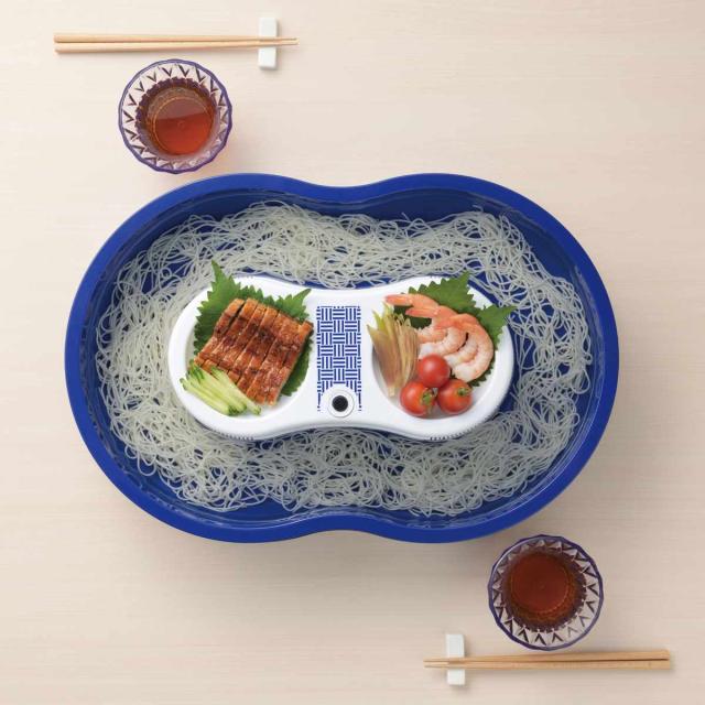 スイッチひとつでお手軽に流しそうめんが楽しめる