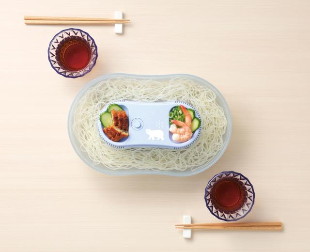 すりガラスのような涼しさあふれる器の中で、くるくると回るそうめんに涼を感じられるそうめん流し器です。スイッチひとつで手軽に楽しめます。1〜2人用サイズです。電池式(別売)なので、アウトドアにも最適です。
