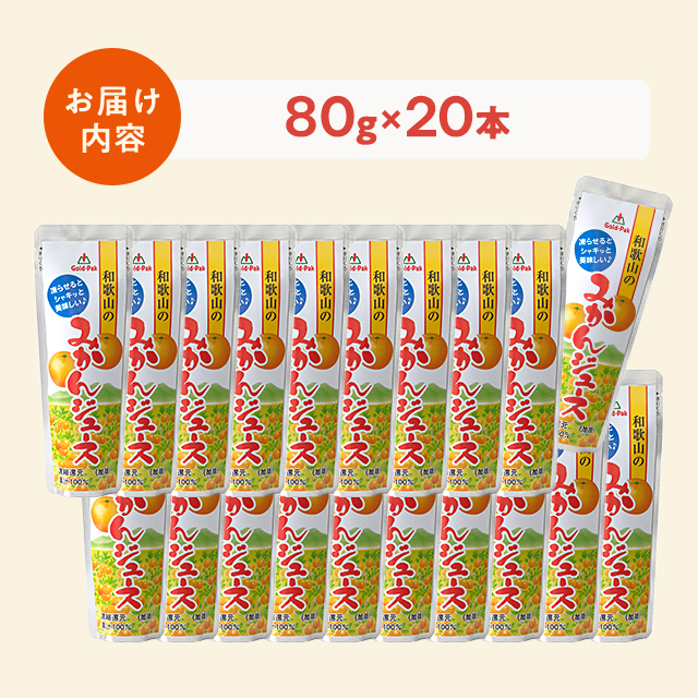 商品名 ゴールドパック 和歌山のみかんジュース 20本 容量 80g×20本 原材料名 うんしゅうみかん(和歌山県)、糖類(砂糖、果糖ぶどう糖液糖)、還元水あめ/香料、安定剤(ペクチン) アレルギー特定原材料 ー 賞味期限 製造日から300日 保存方法 直射日光を避け、常温保存 召し上がり方 ・冷やしてそのままでもおいしく飲めます。
