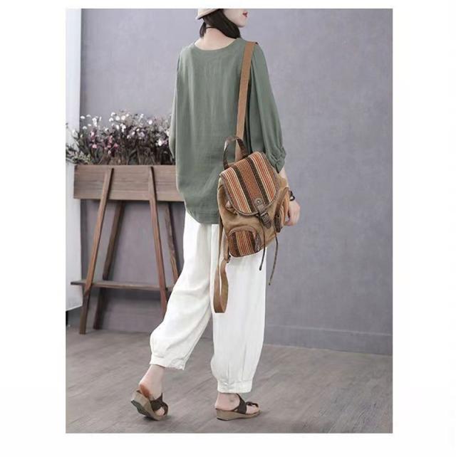 ゆったりとしたシルエットとシンプルな無地デザインで、使い勝手の良さからおすすめのレディース無地シャツです