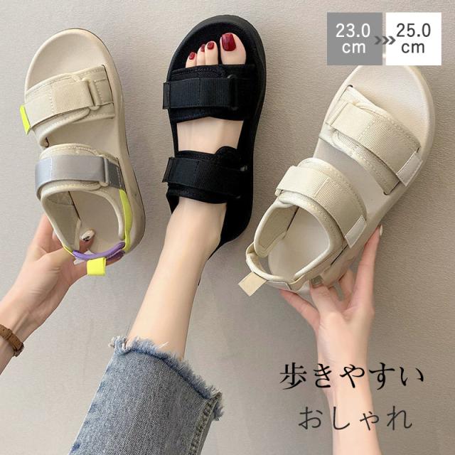 サンダル レディース 厚底 疲れない スポーツサンダル 歩きやすい 外履き マジックテープ 夏 軽量 ビーチサンダル アウトドア