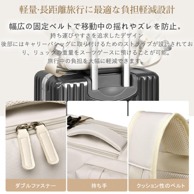 - ブラックを選びましたが、質感はノートパソコン収納用のキャリングバッグやビシネスバッグに近い様に感じました。航空機の機内持ち込みもできるサイズで拡張もできるので活用できそうです。また、ファスナー付きの収...