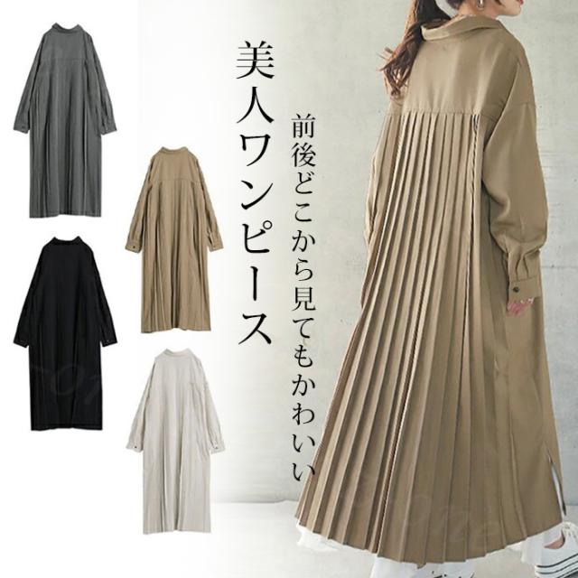 ワンピース レディース ロングワンピース マキシワンピース 新作 マキシワンピ 長袖 きれいめ ドルマン 無地 体型カバー 大きいサイズ 春 夏 シャツワンピ ロングtシャツ 入学式 入園式