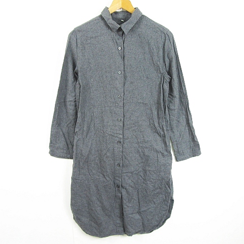 【中古】無印良品 良品計画 シャツ ワンピース 長袖 膝下丈 綿 S グレー kz11813 レディース