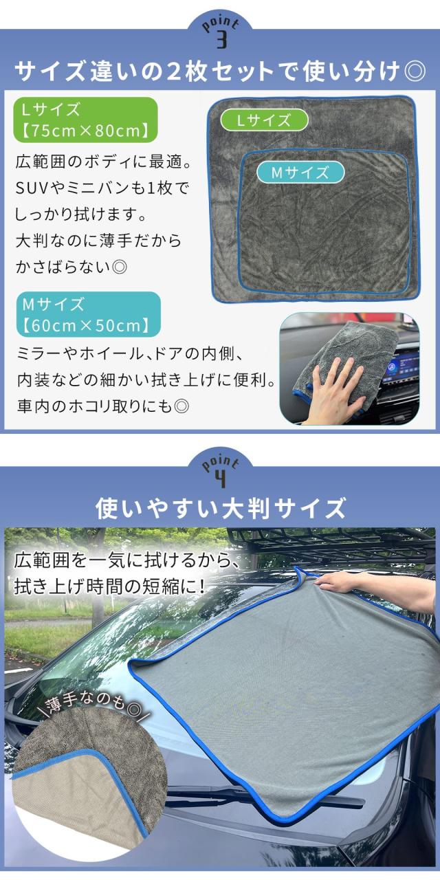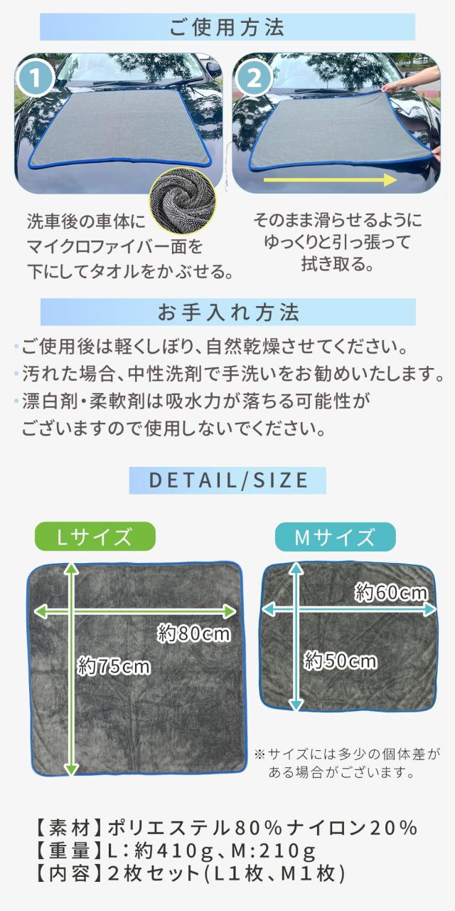 洗車吸水タオル/2枚セット/大判/洗車グッズ/洗車/セット/洗車用/タオル/時短/クロス/拭き上げクロス/マイクロファイバー/超吸水/二度拭きいらず/洗車用品/洗車クロス/傷防止/両面/グレー/ドライングタオル/拭き上げ/拭き取り/二重構造/厚手/吸水/吸水力/小中型/SUV/愛車/掃除/大判サイズ/ドライ/柔らかい/ふき取り/ホコリ/ほこり/取り/結露/フロントガラス/車内/ガラス拭き/カー用品/車/自動車/曇り取り/洗える/車を拭くタオル/車掃除グッズ/Lサイズ/Mサイズ/60x50cm/75x80cm