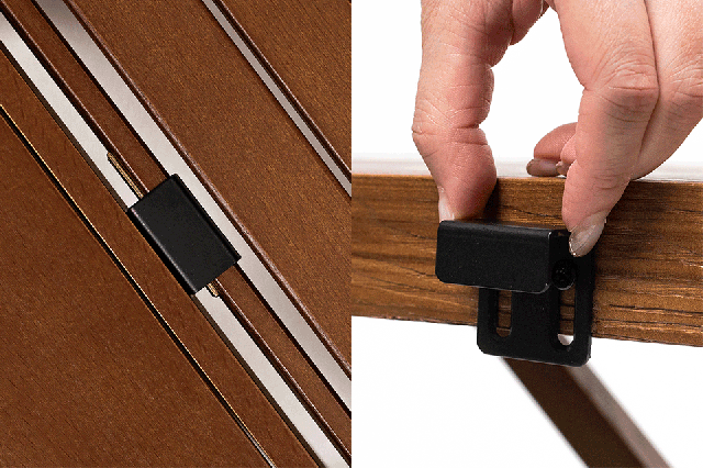 ひっかけるだけの簡単設置。高さ43.5〜46.5cmまでのテーブルに対応します。