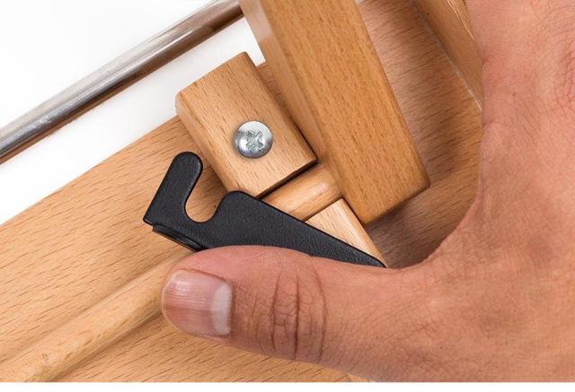 組立後に天板裏面と脚部をしっかり固定できるロック機能付き。組み立てた後にちょっと移動させたい時も、脚が動かず安心です。