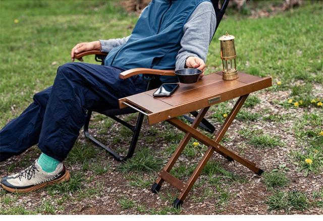 チェア横のサイドテーブルとしても使用可能。飲み物やおつまみを置くちょっとしたスペースが欲しい時に便利です。