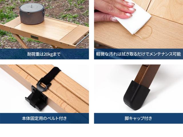 ●素材:ブナ(本体、天板)、ステンレス(サイドバー)、フック(スチール)、600Dポリエステルオックスフォード(収納袋)