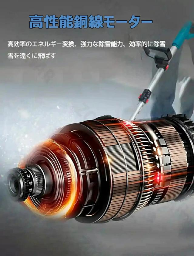【大容量バッテリー】 電動除雪機には3.0 Ahの大容量バッテリーが搭載されています。高性能バッテリーにより、長時間の作業が可能で、一回の充電で最大30分間稼働します。これにより、柔軟性が向上し、頻繁な充電が不要になり、ユーザーにとってより便利です。