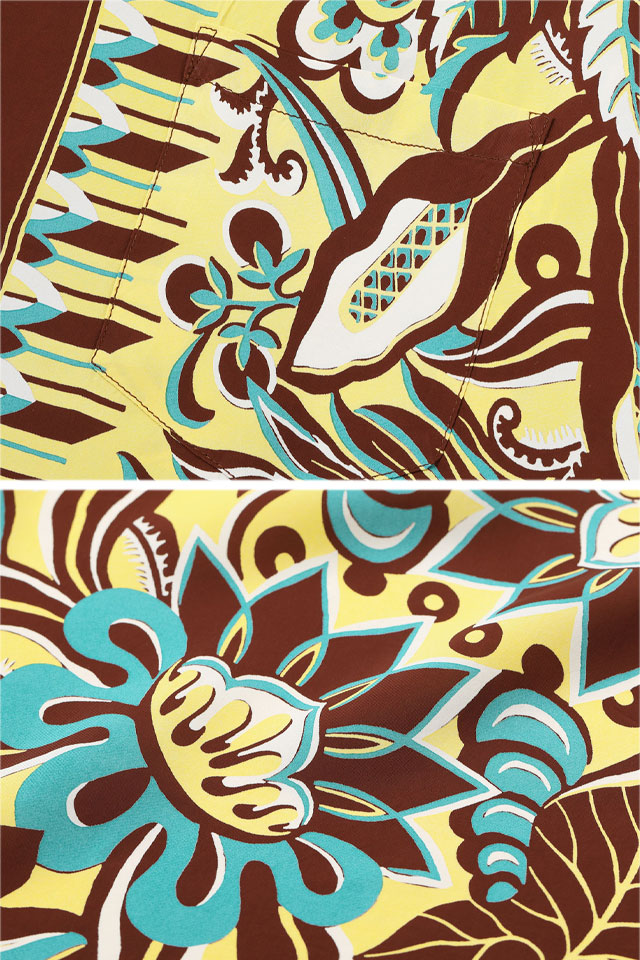 また、生地全体の中央部分はオールオーバー・パターンでデザインされ、後身頃の部分に使われています。