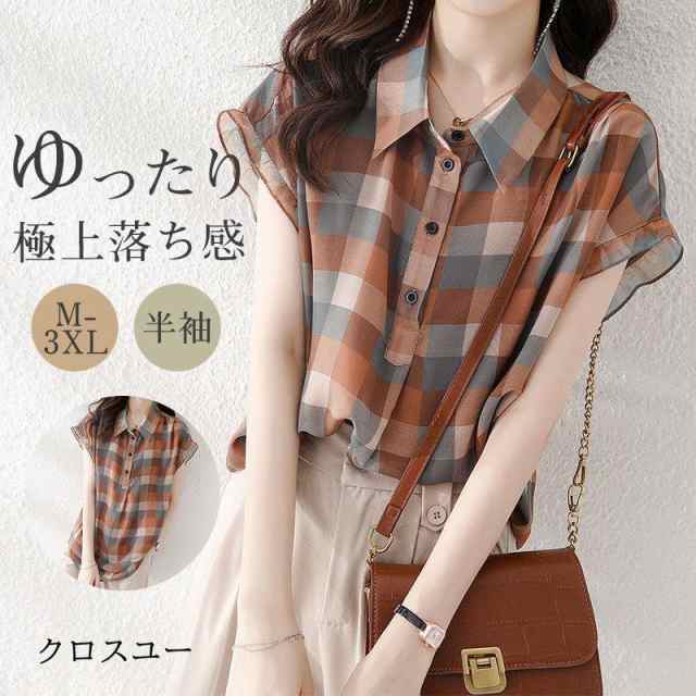 ブラウス 半袖 レディース シャツ トップス 切替 カットソー 重ね着 通勤 春夏 Tシャツ 柔らかい チュニック チェック柄