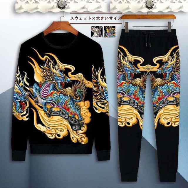 ジャージ メンズ セットアップ 大好評 おしゃれ 龍柄 長袖パーカー トラ柄 かっこいい ジョガーパンツ 流行 ハンサム スウェット 春秋冬 上下 運動着