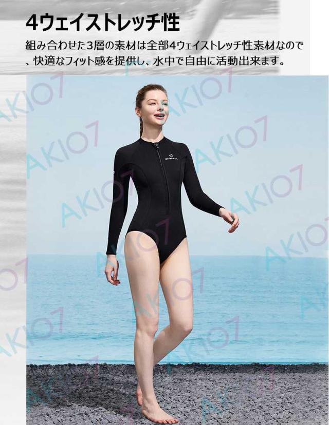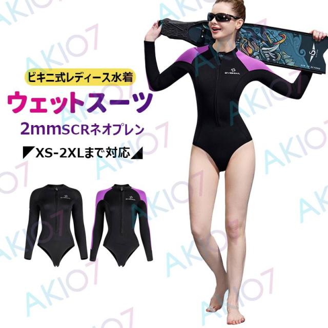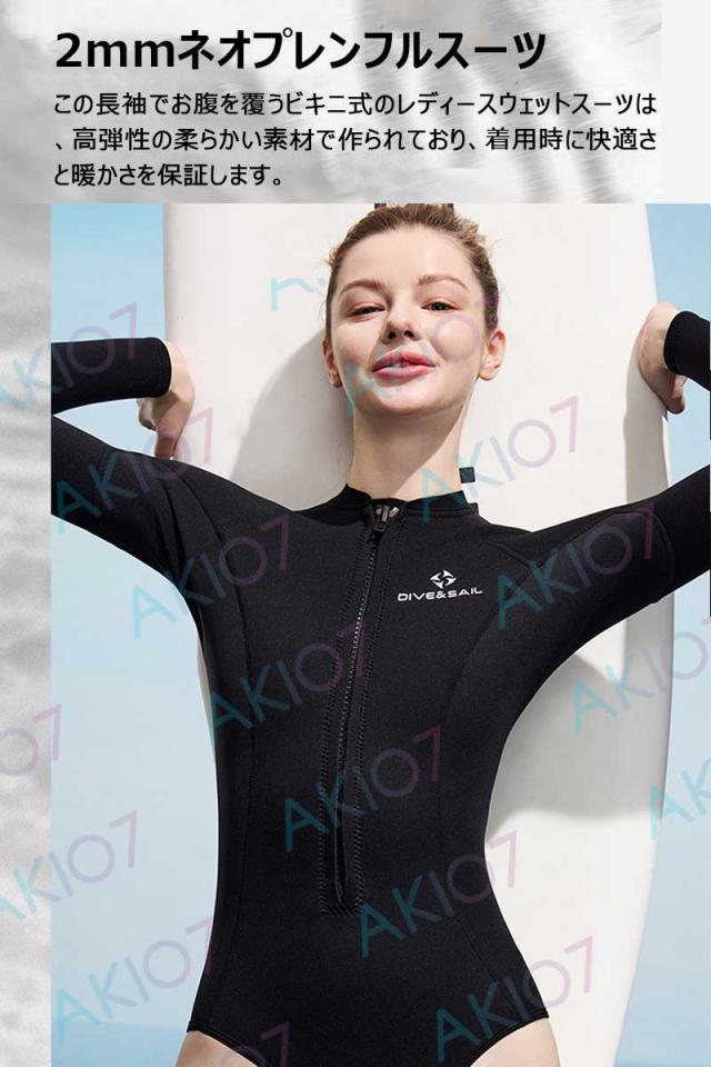 【2mm SCRネオプレン&ビキニ式】ウェットスーツ 長袖 水着 水中作業 素潜り ダイビング サーフィン ウィンドサーフィン マリンスポーツ 水上活動 レディース 女性 擦り傷防止 保温 日焼け防止 伸縮性