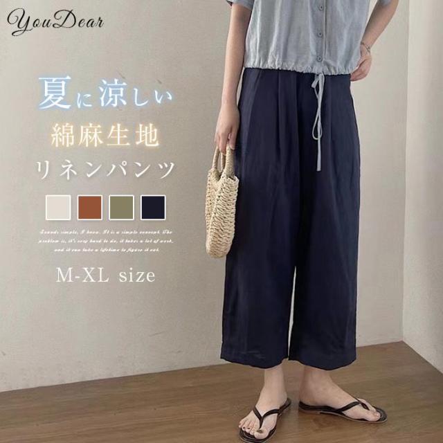 ワイドパンツ パンツ レディース 40代 春夏 綿麻 ボトムス ロングパンツ 韓国風 おしゃれ コットンリネン 体型カバー ウエストゴム ゆったり 楽ちん