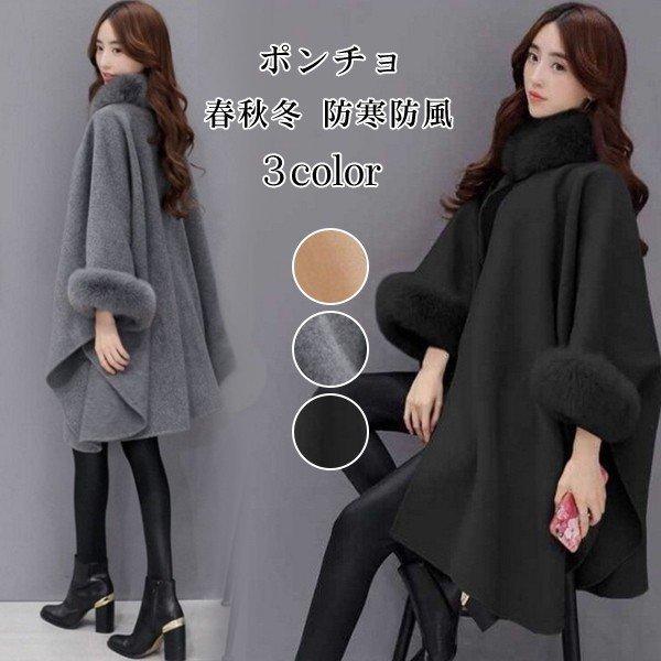ポンチョ レディース 春 秋 冬 マントコート ストール ファーつき ドルマンスリーブ おしゃれ 体型カバー 着痩せ 冬アウター マントオーバー 防寒 防風 通勤
