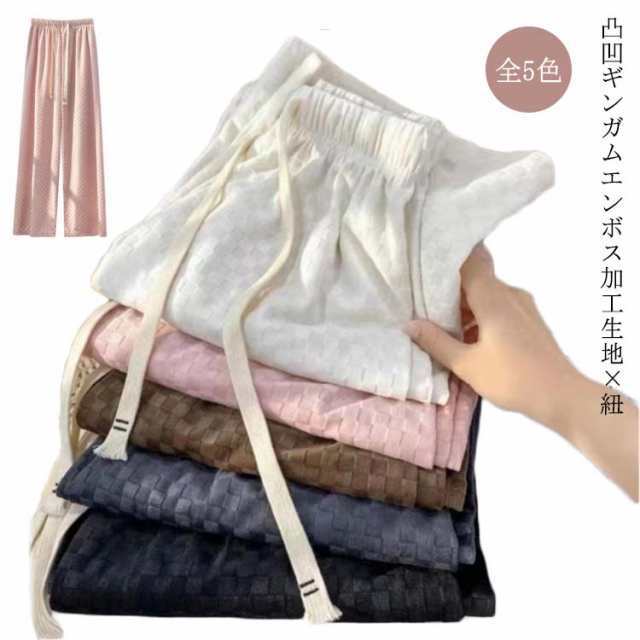 ジャガード ワンマイルウェア 体型カバー パンツ レディース 凸凹ギンガム加工ワイドパンツ 市松 ギンガム ワイドパンツ チェック レディース 部屋着 凸凹 リラックス ワイド ウエストゴム カジュアル グリーン 韓国 ピンク ブラック ゆったり