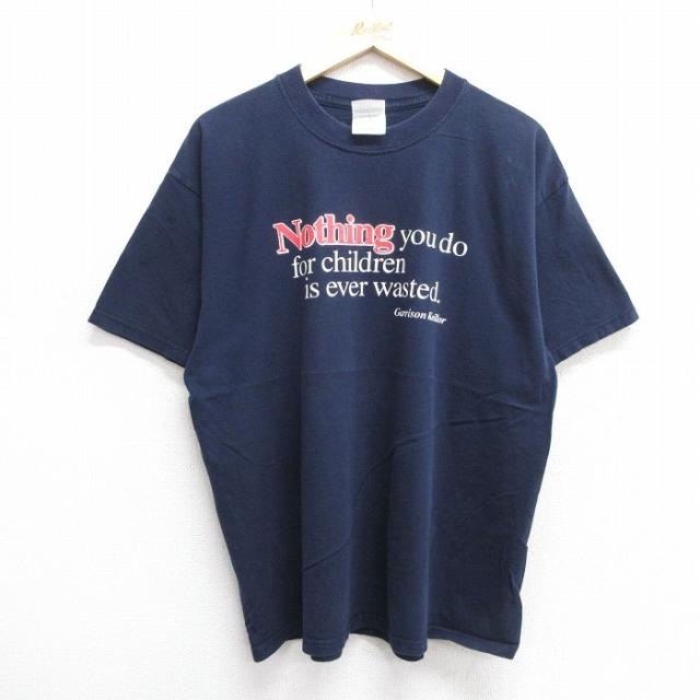 古着 半袖 ビンテージ Tシャツ メンズ 00年代 00s メッセージ コットン クルーネック カナダ製 紺 ネイビー XLサイズ 中古 中古 古着