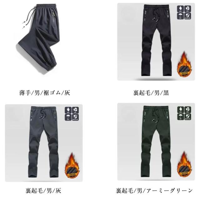 | 色 | 薄手/男/灰 薄手/男/アイボリー 薄手/男/黒 薄手/男/裾ゴム/黒 薄手/男/裾ゴム/灰 裏起毛/男/黒 裏起毛/男/灰 裏起毛/男/アーミーグリーン |