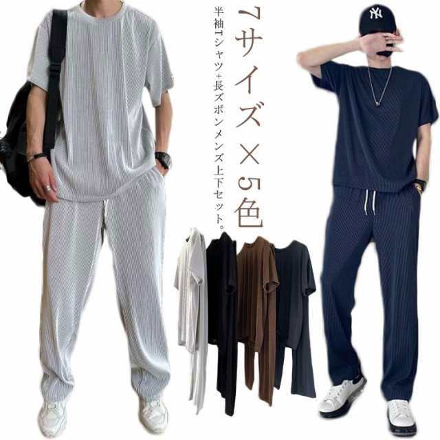 2点セット 7サイズ×5色 セットアップ メンズ 半袖 Tシャツ ワイドパンツ 半袖 ロングパンツ アイスシルク 接触冷感 夏 薄手 上下セット スポーツ 運動着 大きいサイズ 無地 アウトドア 運動着 カジュアル おしゃれ ルームウェア 春 夏 秋 送料無料