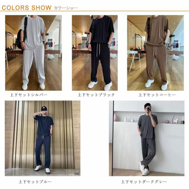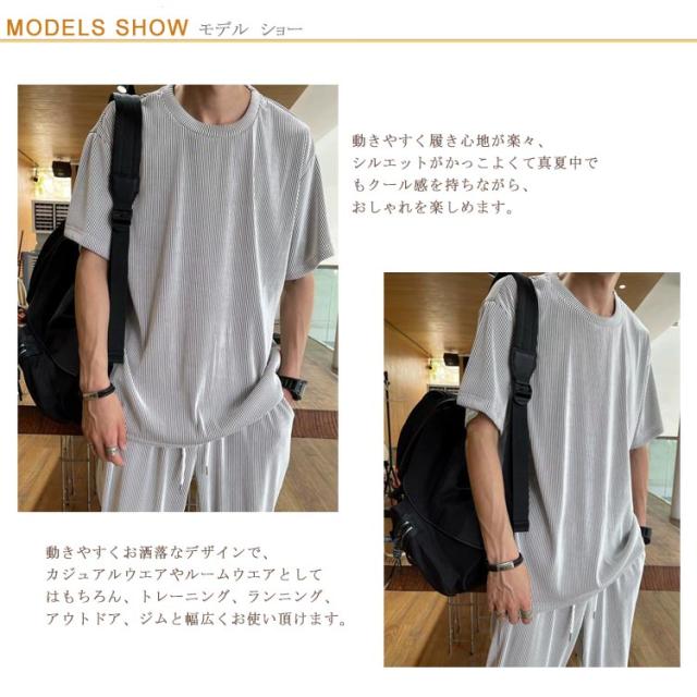 | 半袖Tシャツ+長ズボンメンズ上下セット。 接触冷感素材で汗ばむ季節もサラッと快適◎ ウエストは総ゴム、外側には調節可能なヒモ付きになっています。 動きやすく履き心地が楽々、シルエットがかっこよくて真夏中でもクール感を持ちながら、おしゃれを楽しめます。 動きやすくお洒落なデザインで、カジュアルウエアやルームウエアとしてはもちろん、トレーニング、ランニング、アウトドア、ジムと幅広くお使い頂けます。 | |