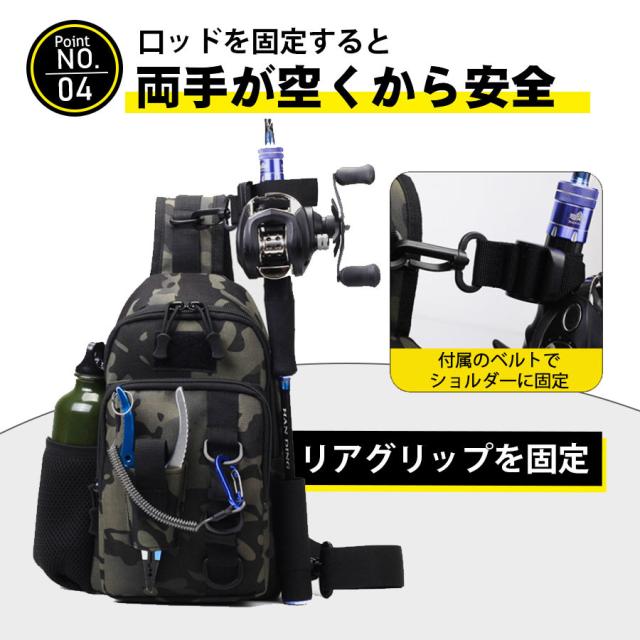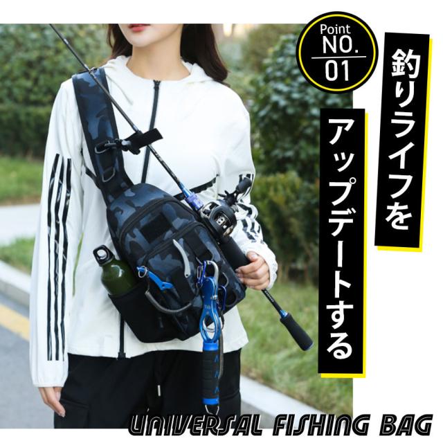 即納 フィッシングバッグ 釣りバッグ ロッドホルダー 大容量 ウエスト ヒップバッグ 防水 ショルダー 釣り タックル 多機能 迷彩 カ